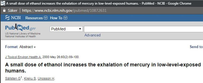 Eftersom alkoholånga minskar upptaget av kvicksilverånga rekommenderas en eller två snapsar